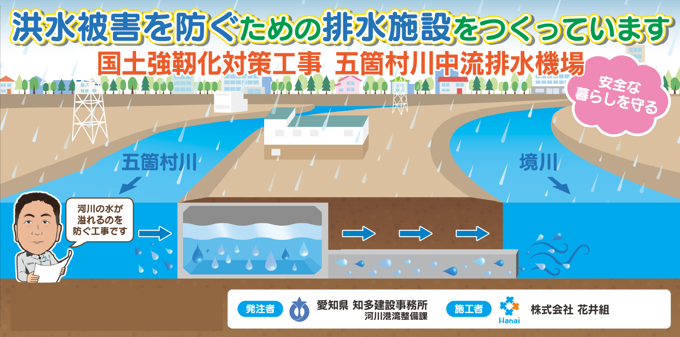 | 工事名 | 中小河川改良工事(防災安全)(週休2日・ICT簡易)(R5国補正)(五箇村川中流排水機場) |